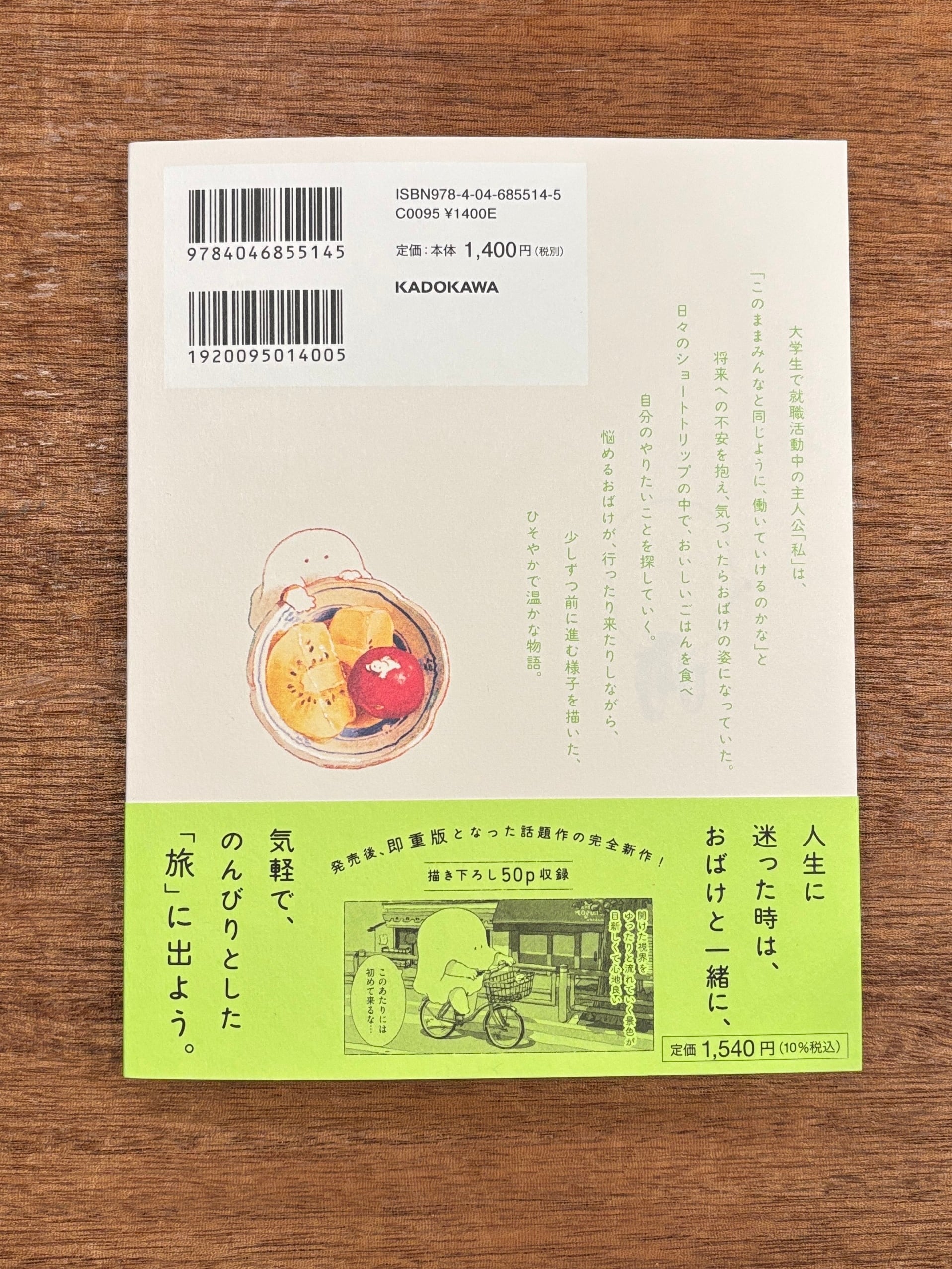 地方から上京し、就職活動中の大学生の主人公「私」は、「人生このままでいいのかな?」と悩みを感じ、気づいたらおばけの姿になってしまう。そんな将来への不安と向き合いながら、日々の中で、気分転換に私は小さな「旅」に出る。その過程で出会う人々や旅先でのおいしいごはんを通じて、少しずつ自分らしい生き方を選んでいく。そんな悩める「おばけ」の姿を描いた、あたたかくて優しい物語。